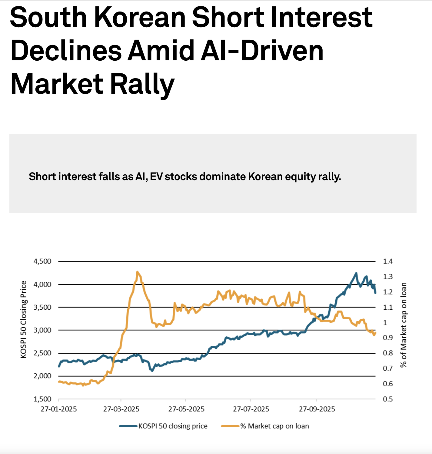 In current real-time conditions, the picture in 2025 closely matches the transmission channels modeled in this project. South Korean equities have staged a strong rally, with the KOSPI up roughly 60% year-to-date and recently trading above the 4,000 level as foreign investors return on the back of AI-driven demand for Korean chip and tech stocks (S&P Global, 2025)1,.