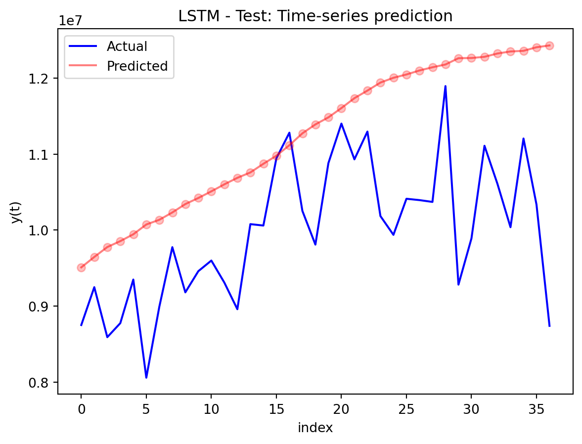 results_exports_lstm = train_single_model(df4, 'LSTM', 'South Korea to USA(thousand dollars)', LOOKBACK)