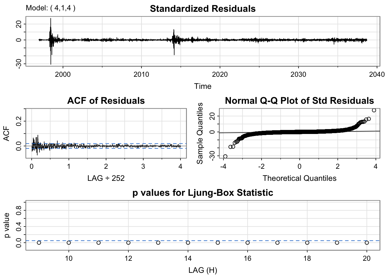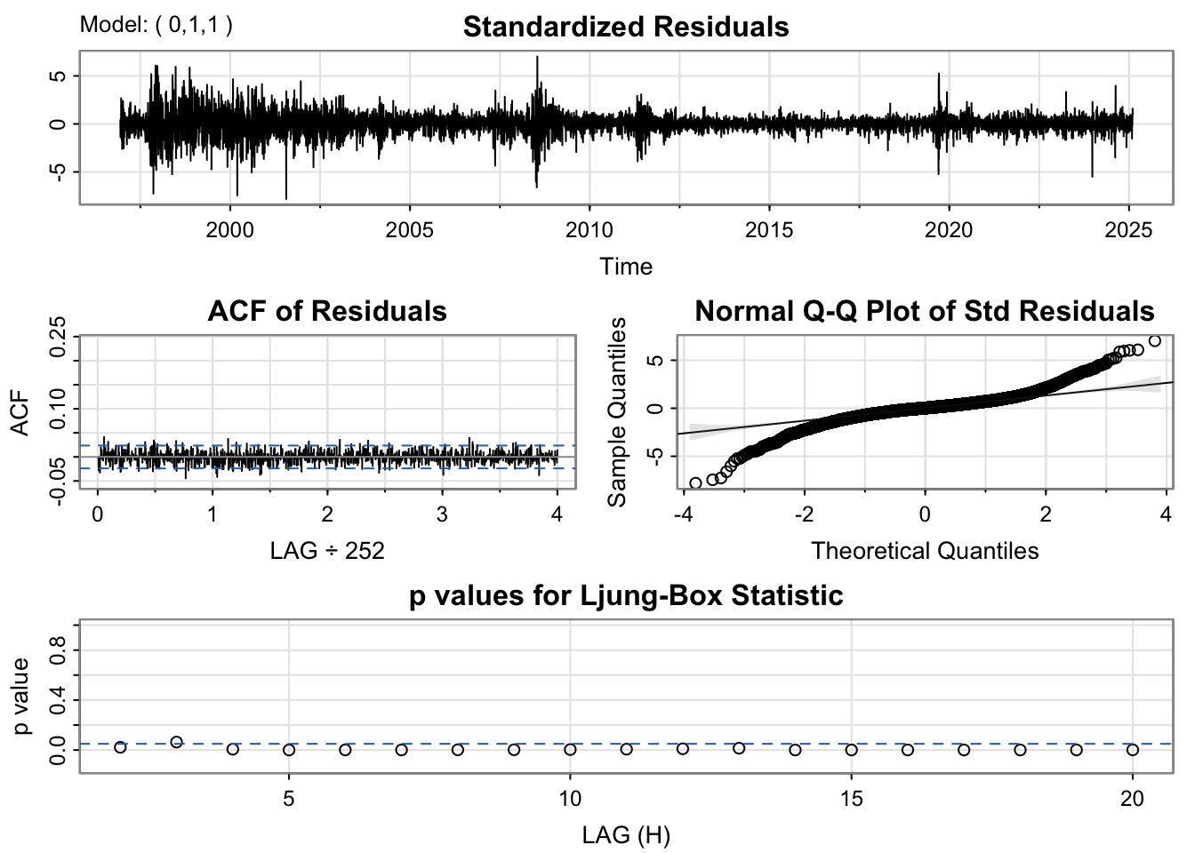 Ljung-Box Test R Q(20) 151.97084 0.000000e+00
