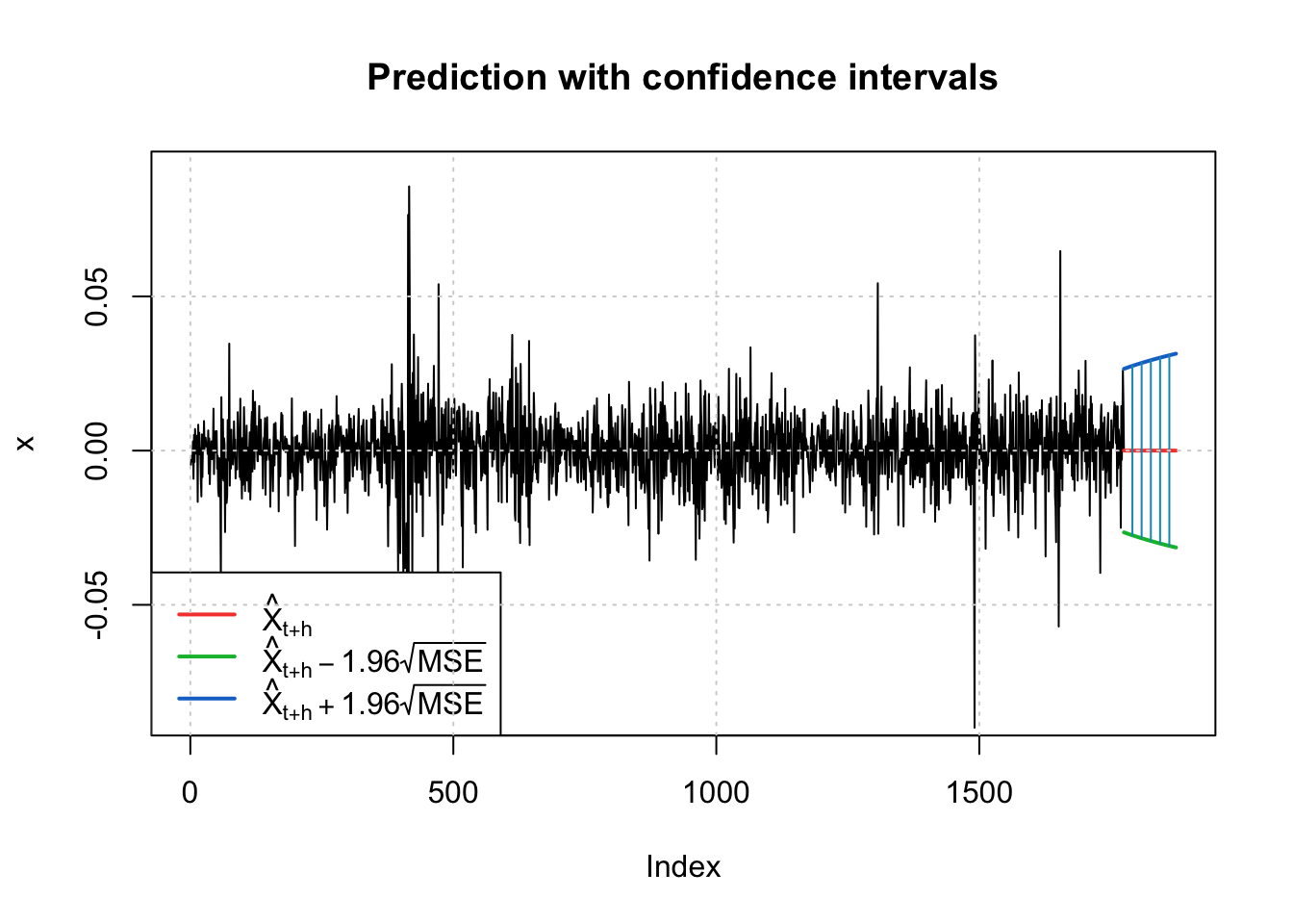 fc <-predict(final.fit20, n.ahead =100)invisible(predict(final.fit20, n.ahead =100, plot =TRUE))